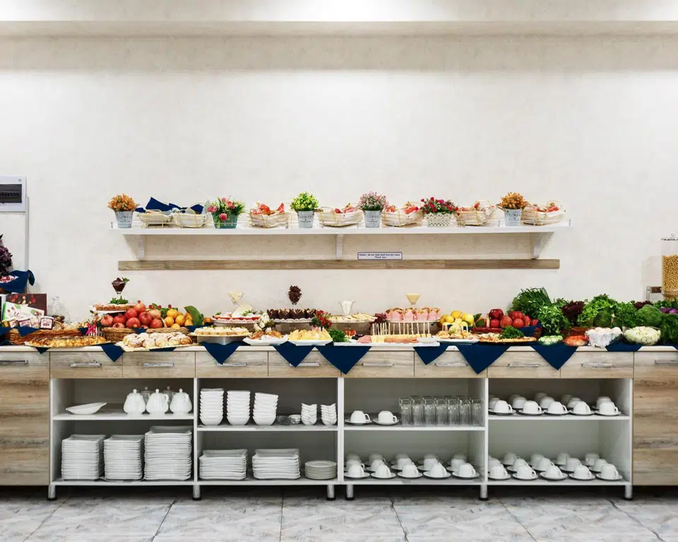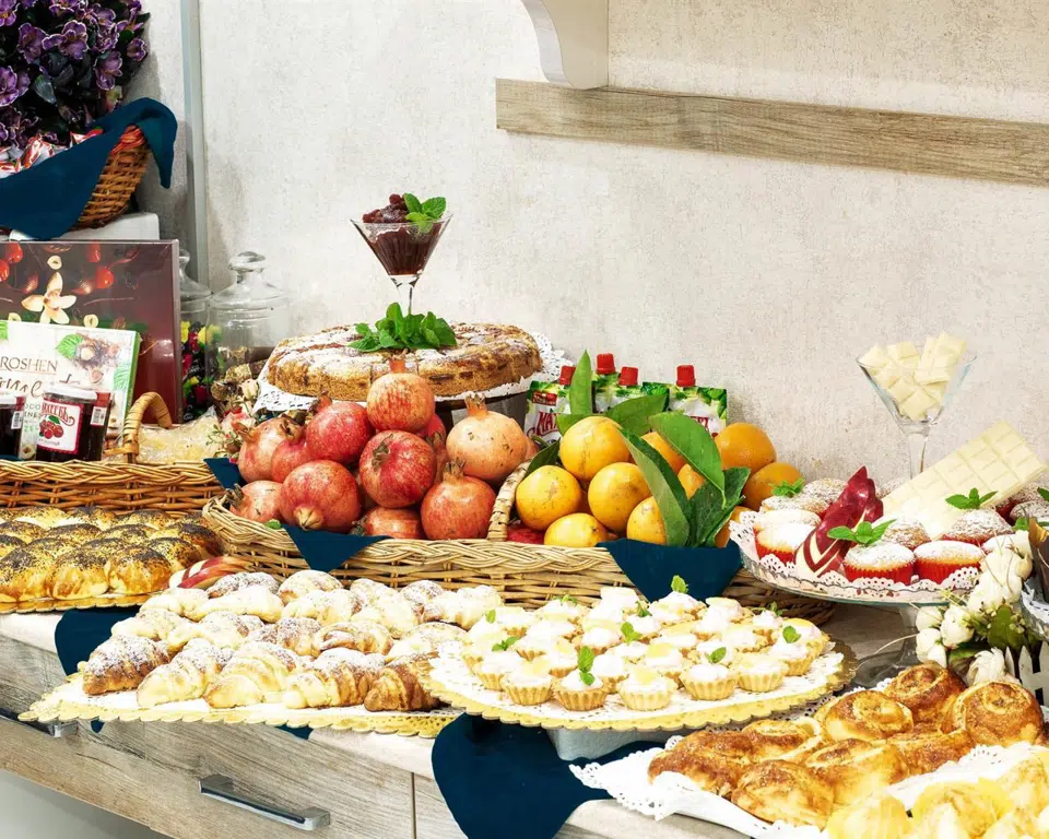 Мы предлагаем сытный и вкусный завтрак для отличного начала дня. Гости могут насладиться свежими фруктами, выпечкой, разнообразными хлебобулочными изделиями, горячими блюдами, йогуртами, хлопьями, соками и горячим кофе или чаем.